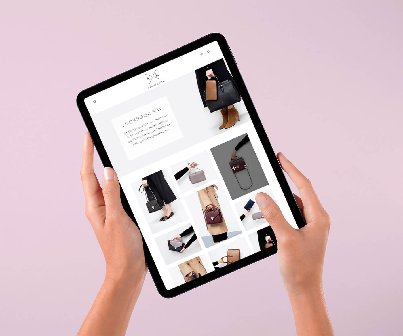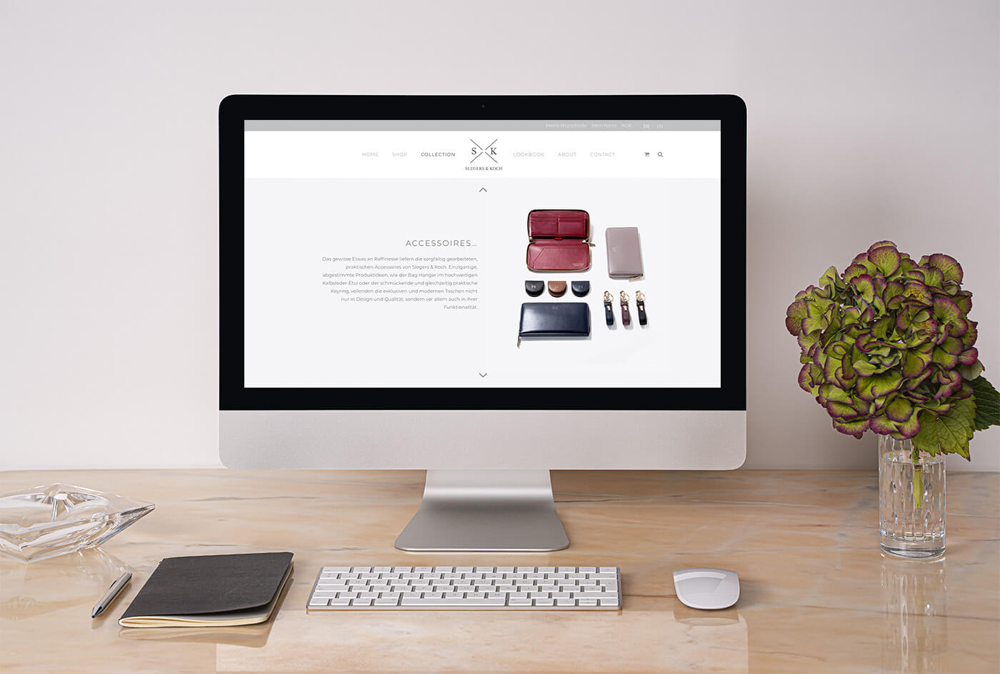 Web Design und Umsetzung des multilingualen Online Shops für das luxuriöse Taschenlabel Slegers & Koch, das hochwertige Ledertaschen und Accessoires – handmade in italy – in Frankfurt am Main designed.