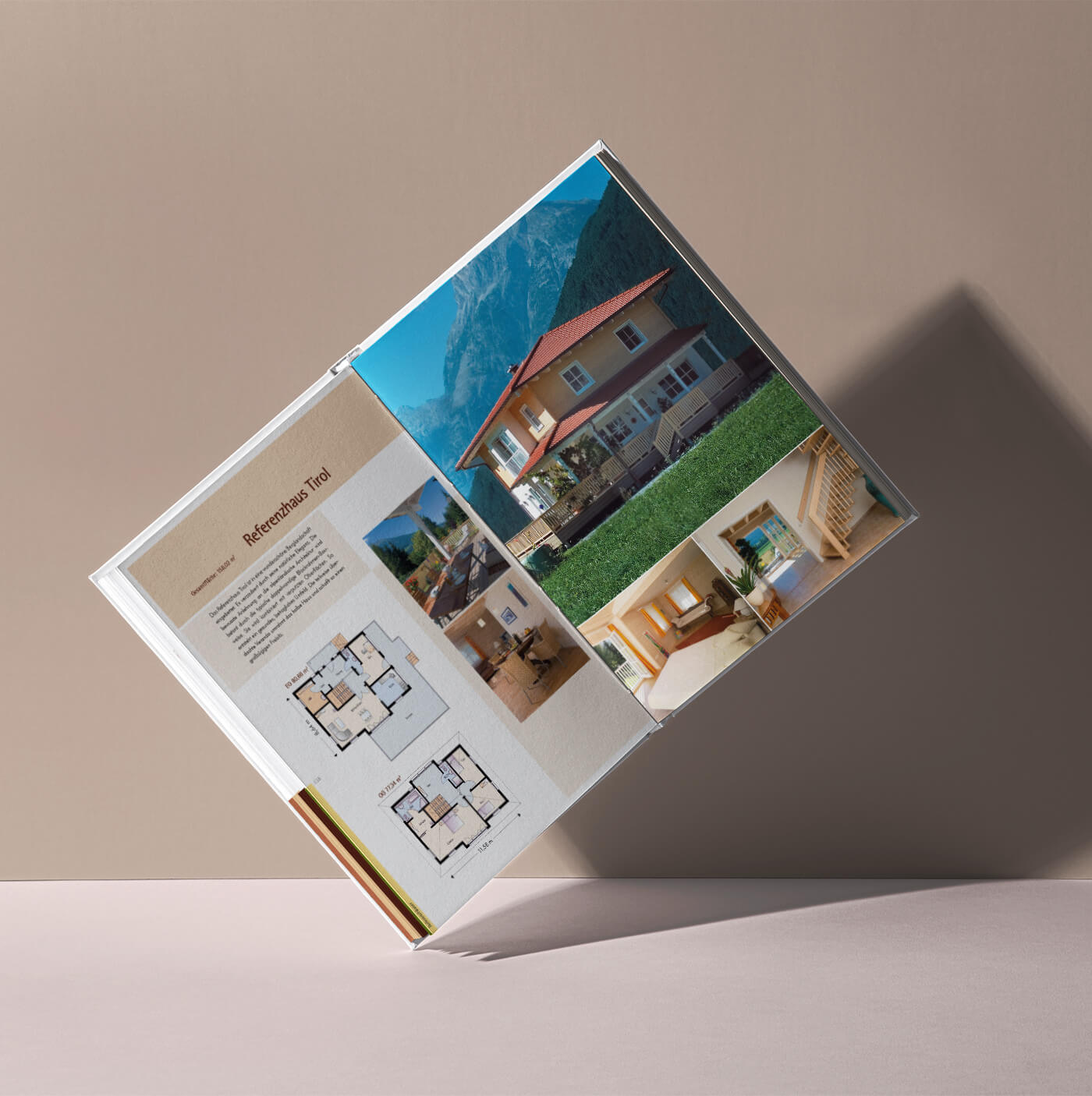 Das Buch für die Firma Sonnleitner besteht aus 145 Seiten und einem Hardcover. Es ist ein Leitfaden, der angehende Baufamilien unterstützen soll, weil man in der Regel nur einmal im Leben baut und das mit viel Liebe.